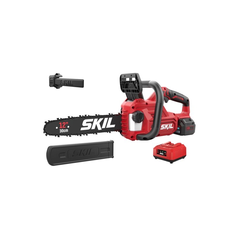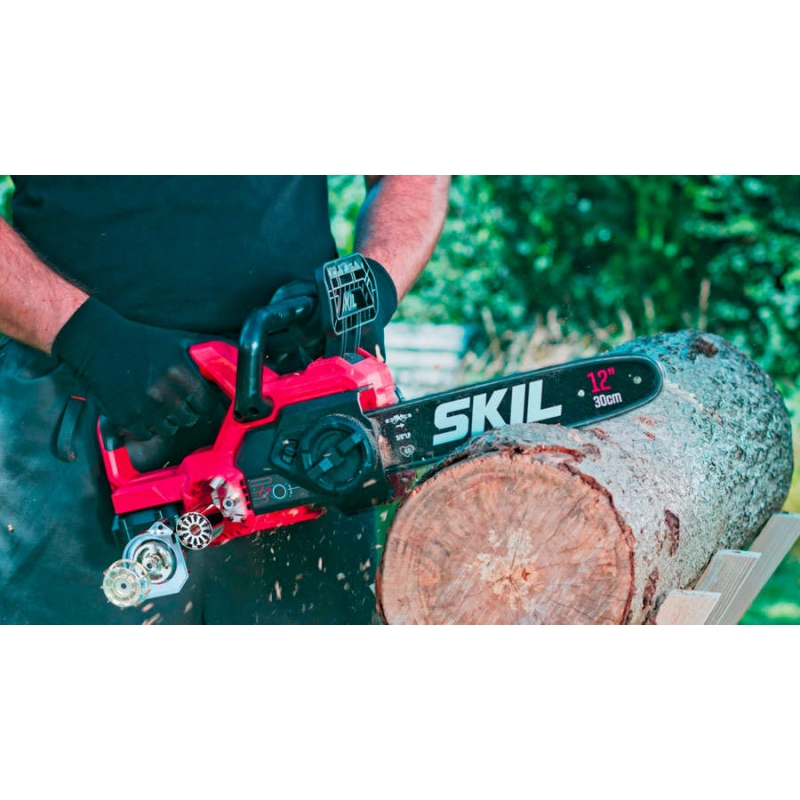 A serra de corrente sem fio e sem escovas SKIL 0534 é a solução ideal para serrar rápida e eficazmente ramos e troncos de pequena dimensão. O motor sem escovas é mais rápido, mais resistente e dura 10 vezes mais do que um motor com escovas comparável. Combinada com uma lâmina de 30 cm e uma elevada velocidade da corrente, o seu trabalho é executado facilmente. A tensão da corrente pode ser ajustada rapidamente, sem necessidade de quaisquer ferramentas e a lubrificação da corrente ocorre automaticamente. Estas funções economizadoras de tempo permitem-lhe focar-se mais nas suas tarefas de serragem. A corrente para quase instantaneamente quando o interruptor do gatilho é solto ou se o travão de ricochete for acionado durante a serragem. Graças ao design exclusivo «Easy Storage» da SKIL, esta ferramenta ocupa um espaço de arrumação mínimo depois da utilização. A SKIL 0534 AA é fornecida com uma bateria «20V Max» (18 V) de 4,0 Ah «Keep Cool™», um carregador rápido, uma corrente, uma barra da corrente, uma cobertura da corrente e um gancho «Easy Storage».